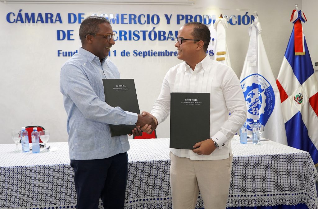 San Cristóbal– El Instituto Dominicano de Prevención y Protección de Riesgos Laborales (IDOPPRIL) y la Cámara de Comercio y Producción de San Cristóbal suscribiendo un convenio para desarrollar acciones conjuntas orientadas a promover la seguridad ocupacional en las empresas de esta provincia.